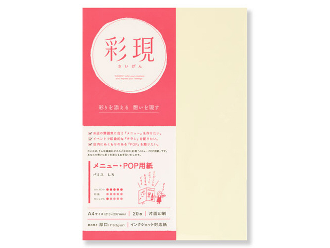 【彩現 メニュー・POP用紙】 パミス しろ