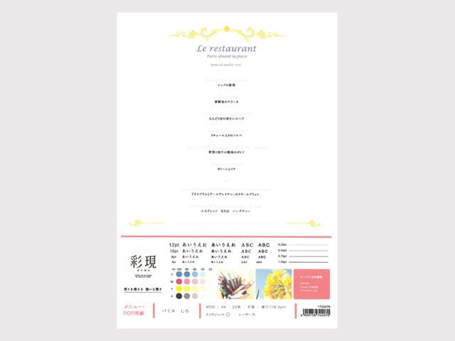 | 商品名 | 1742070 パミス しろ A4(20) [彩現 メニュー・POP用紙] |