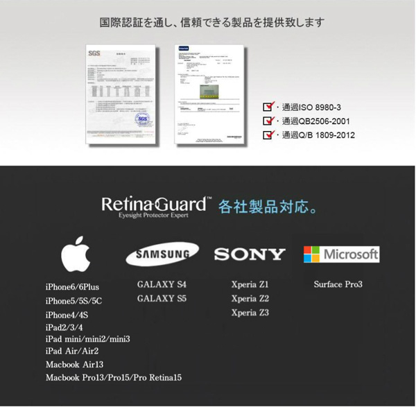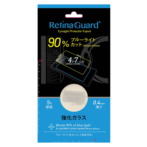 スマートフォン用[フリーサイズ4.7インチ] RetinaGuard ブルーライト90%カット強化ガラスフィルム o-462
