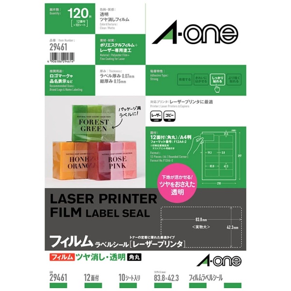 ラベルシール ツヤ消シフィルム・透明[レーザープリンタ用](A4サイズ・10シート・120片) 29461 【864】
