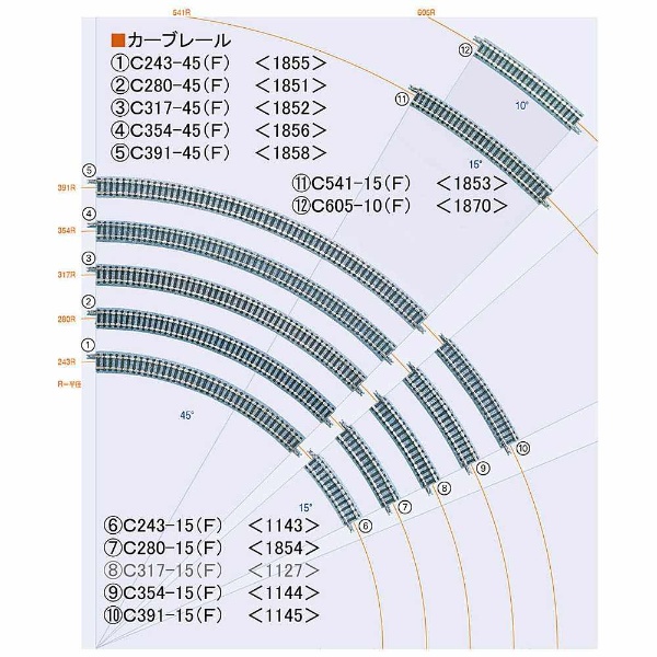 ファイントラックの基本となるレールで、曲線部分に相当するカーブレールのグループです。