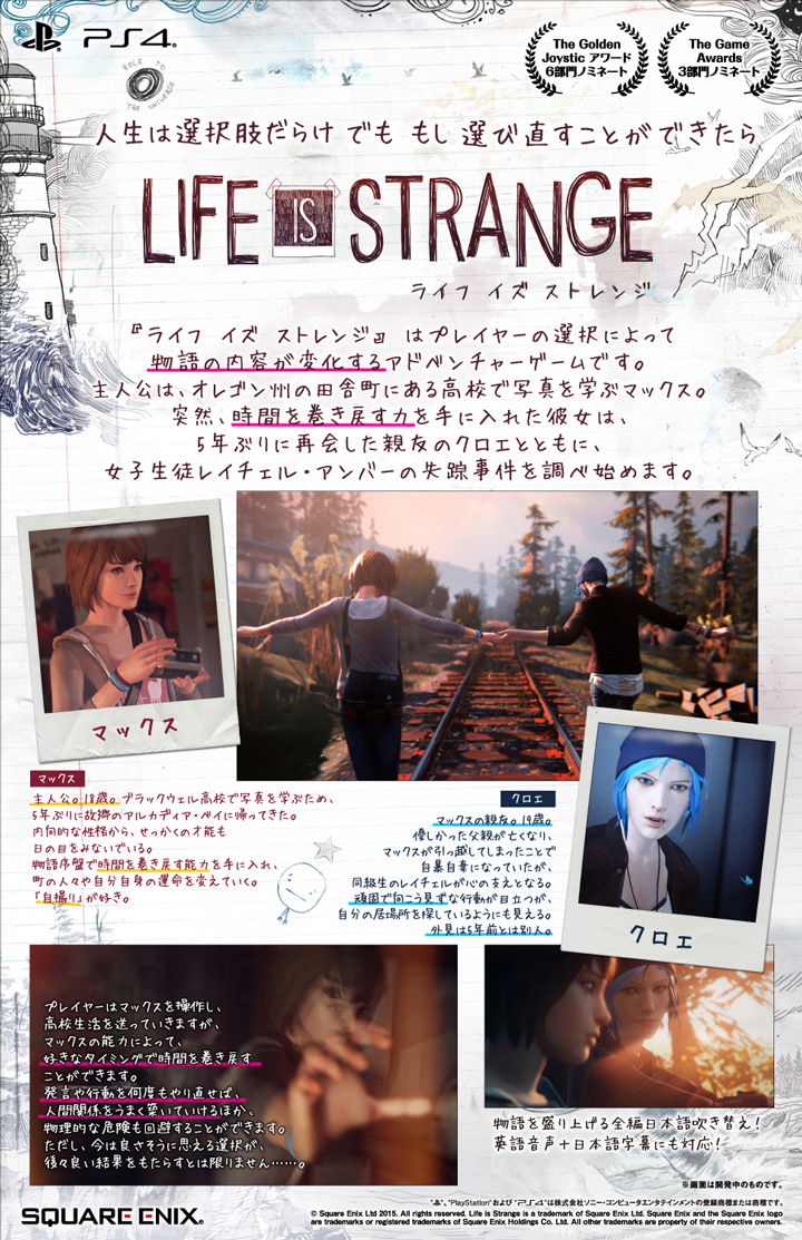 (C) Square Enix Ltd 2015. All rights reserved. Life is Strange is a trademark of Square Enix Ltd. Square Enix and the Square Enix logo are trademarks or registered trademarks of Square Enix Holdings Co. Ltd. All other trademarks are property of their respective owners.