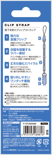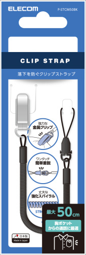 〔カールストラップ〕 スマートフォン用クリップストラップ メタル 50cm ブラック P-STCM50BK 【864】