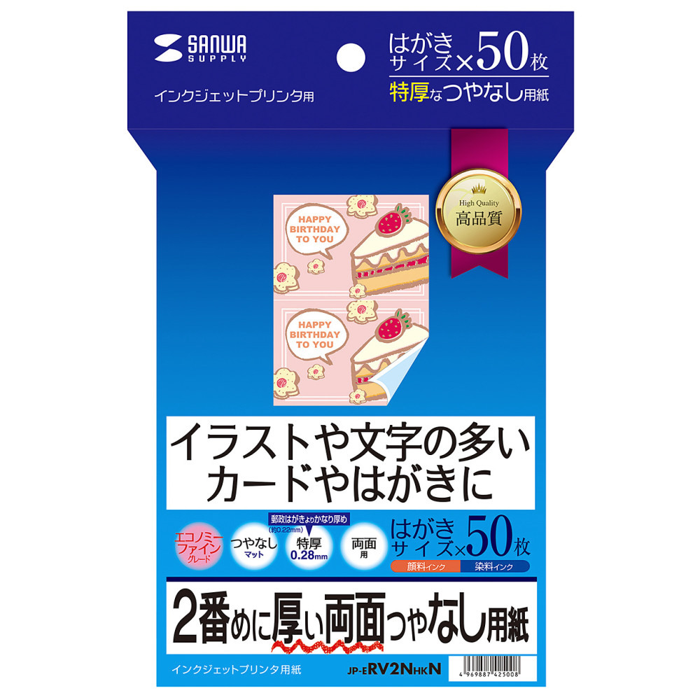 〔インクジェット〕 両面つやなし用紙 0.270mm (はがきサイズ・50枚) JP-ERV2NHKN
