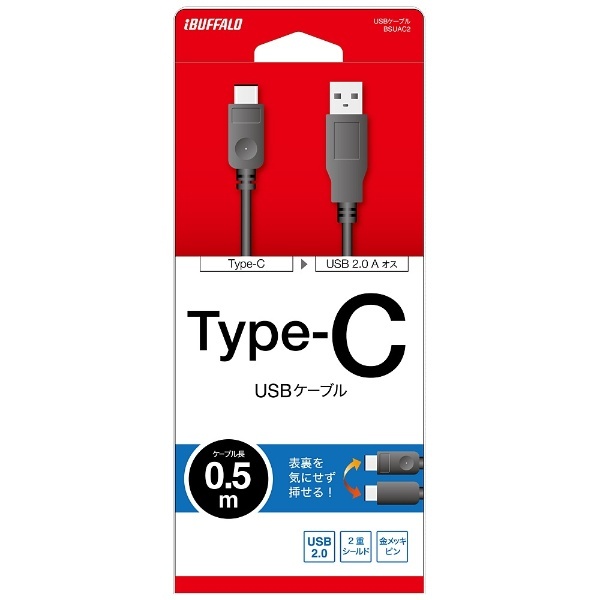 0.5m[USB-C ⇔ USB-A]2.0ケーブル 充電・転送 ブラック BSUAC205BK