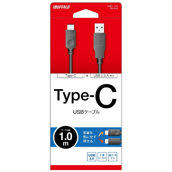 1.0m[USB-C ⇔ USB-A]2.0ケーブル 充電・転送 ブラック BSUAC210BK