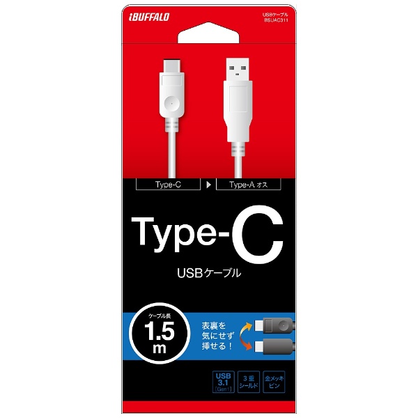 1.5m[USB-C ⇔ USB-A]3.1 Gen1ケーブル 充電・転送 ホワイト BSUAC31115WH