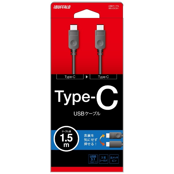 | 商品名 | 1.5m[USB-C ⇔ USB-C]3.1 Gen1ケーブル 転送 ブラック BSUCC31115BK |