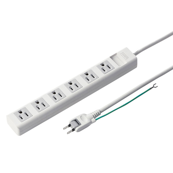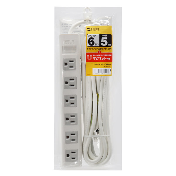 3P6個口、マグネット付き、2Pスイングプラグ仕様の電源タップ。5m。