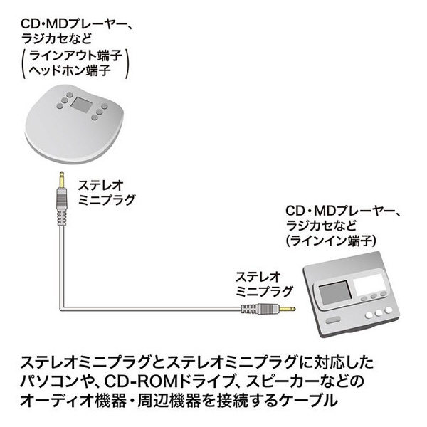 両側3.5mmステレオミニプラグのオーディオケーブル