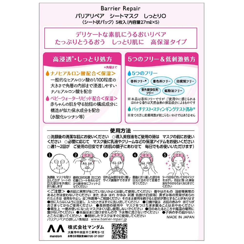 【在庫限り】 【BarrierRepair(バリアリペア)】シートマスクしっとり(5枚)