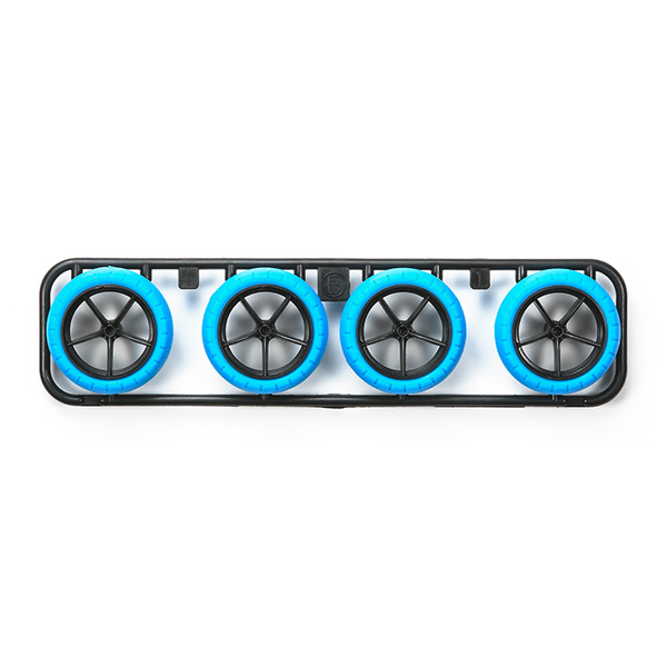 【ミニ四駆】 ハードバレルタイヤ (ブルー) & カーボン強化大径ナローホイール 【再販】