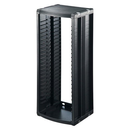 一般的な音楽CDプラケースを26枚収納できる組み立て式のCDラック。増設・連結も可能。ブラック。
