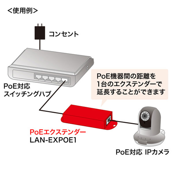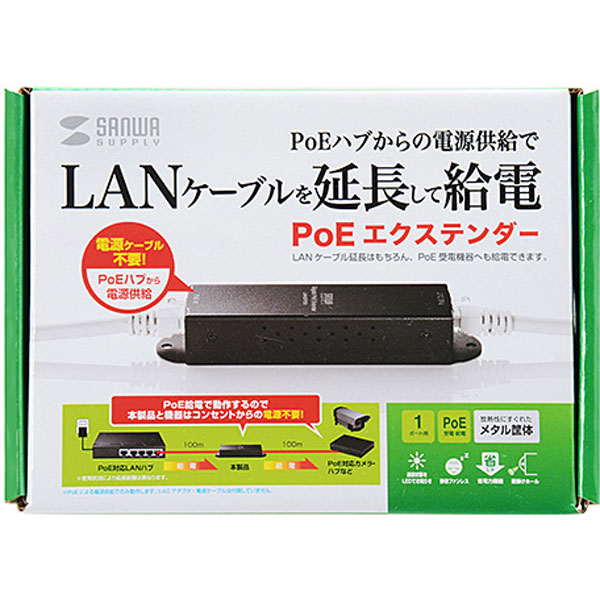 PoEで給電し、LANケーブル通信を延長できるPoEエクステンダー。