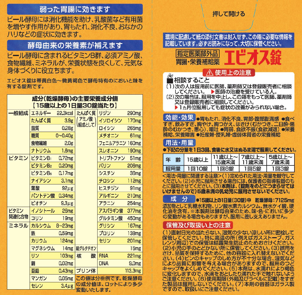 15歳以上の1日量(30錠)中 乾燥酵母 7125mg |