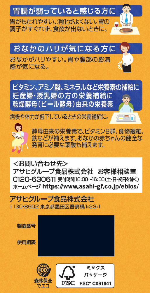 ・胃もたれ、消化不良、胃部・腹部膨満感 ・食べすぎ、飲みすぎ、胸やけ、胸つかえ、はきけ(むかつき、二日酔・悪酔のむかつき、悪心)、嘔吐 ・胃弱、食欲不振(食欲減退) ・栄養補給、栄養障害 ・妊産婦・授乳婦・虚弱体質者の栄養補給 |