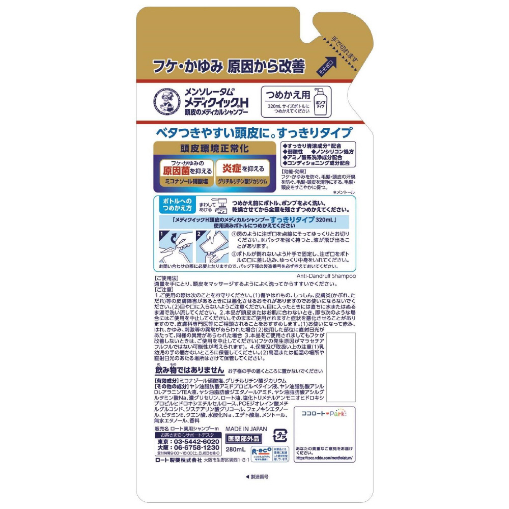 | 商品名 | 【メンソレータム】 メディクイックH 頭皮のメディカルシャンプー つめかえ用 (280ml) |