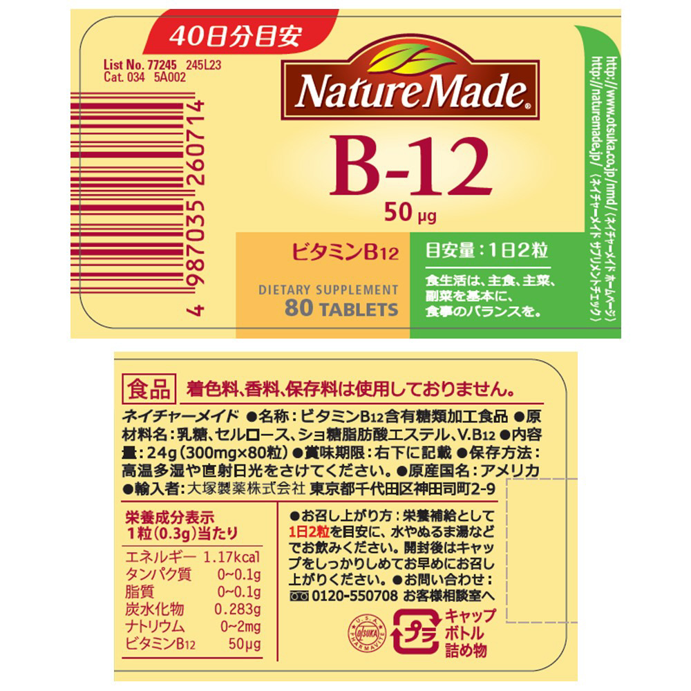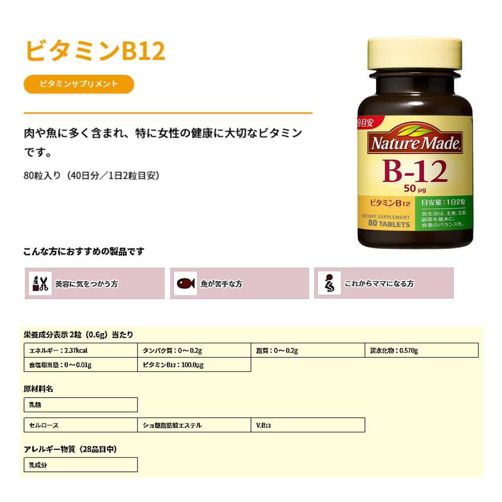 【NatureMade(ネイチャーメイド)】ビタミンB12(80粒)