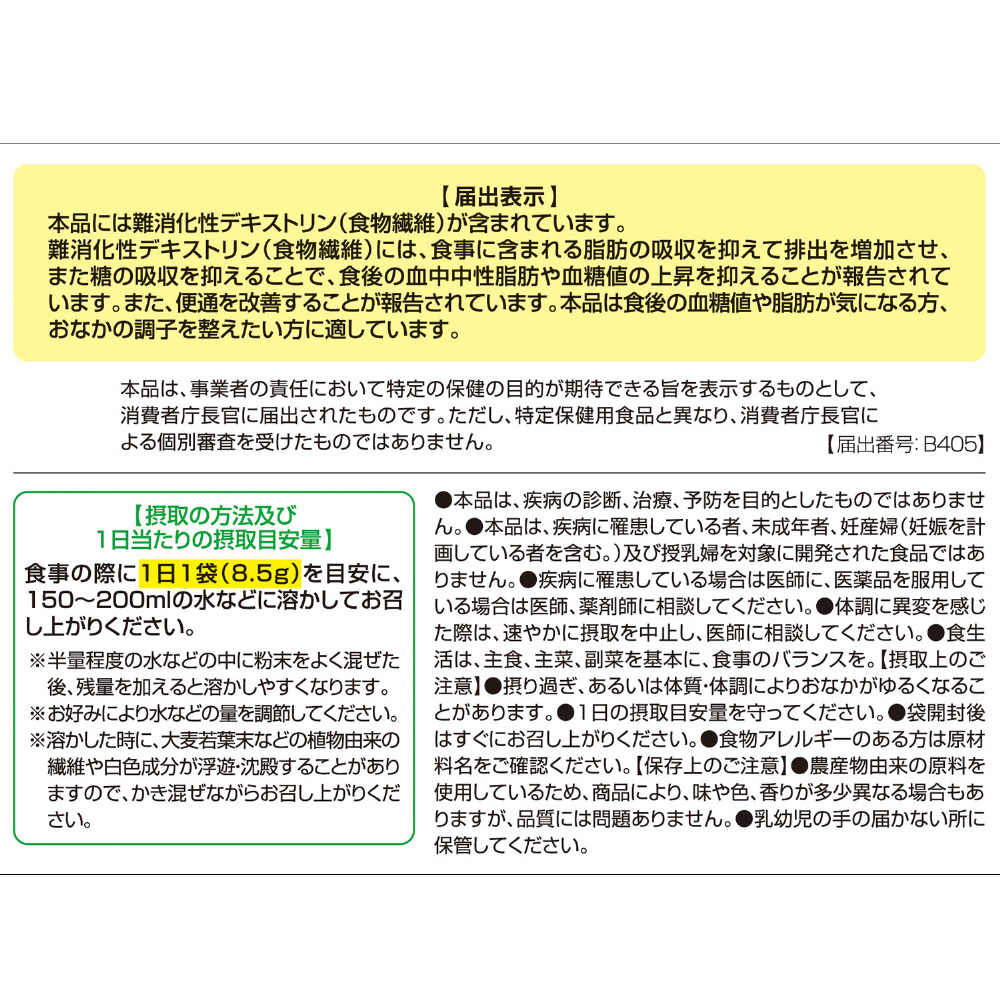 難消化性デキストリン 5000mg/有機大麦若葉/桑の葉/明日葉/モロヘイヤ/クロレラ/緑茶
