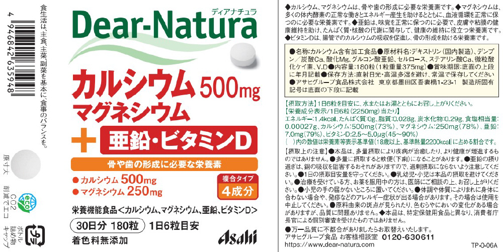 【Dear-Natura(ディアナチュラ)】カルシウム・マグネシウム・亜鉛・ビタミンD(180粒)