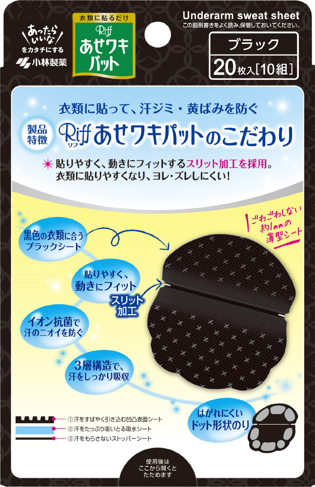 商品名 あせワキパット Riff(リフ) ブラック 10組(20枚)