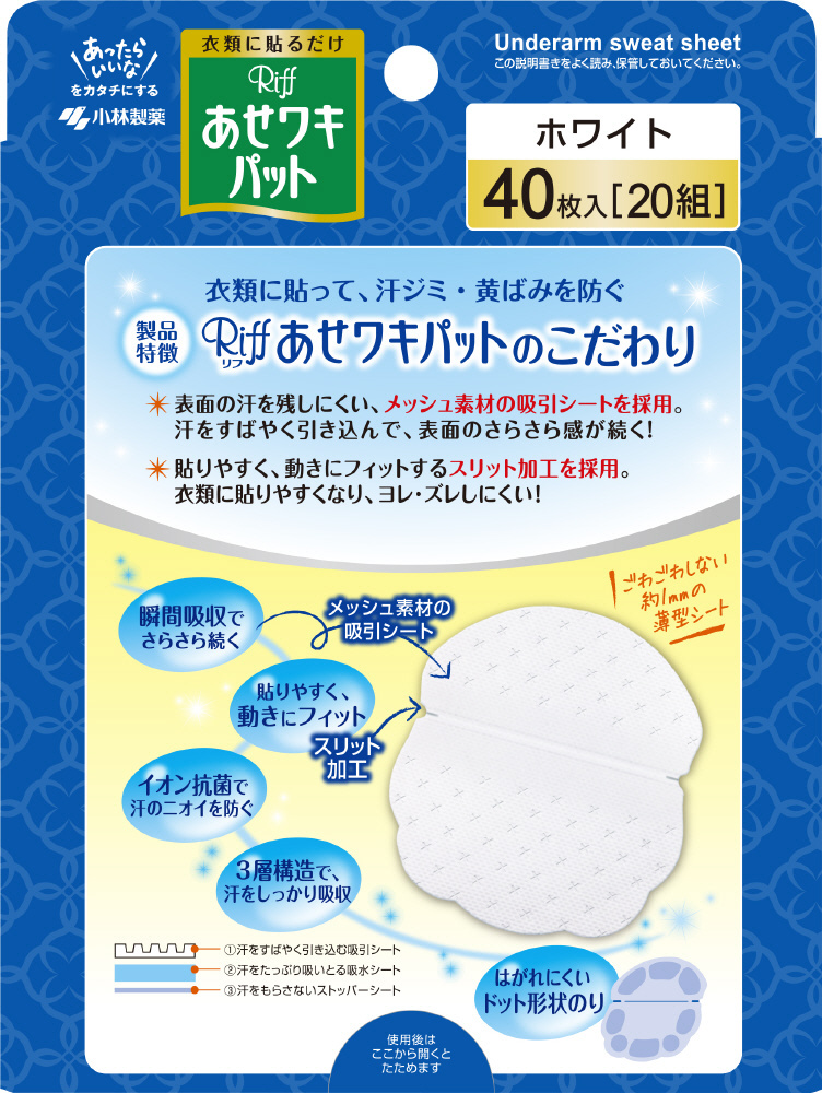 【在庫限り】 【あせワキパット】Riff(リフ) ホワイト お徳用 20組(40枚)