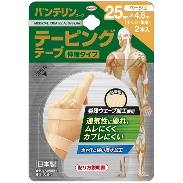 バンテリンコーワテーピング 伸縮タイプ 25mm×4.6m ベージュ 2本入
