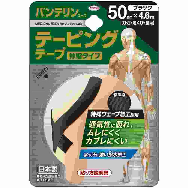 商品名 バンテリンコーワテーピング 伸縮タイプ 50mm×4.6m ブラック