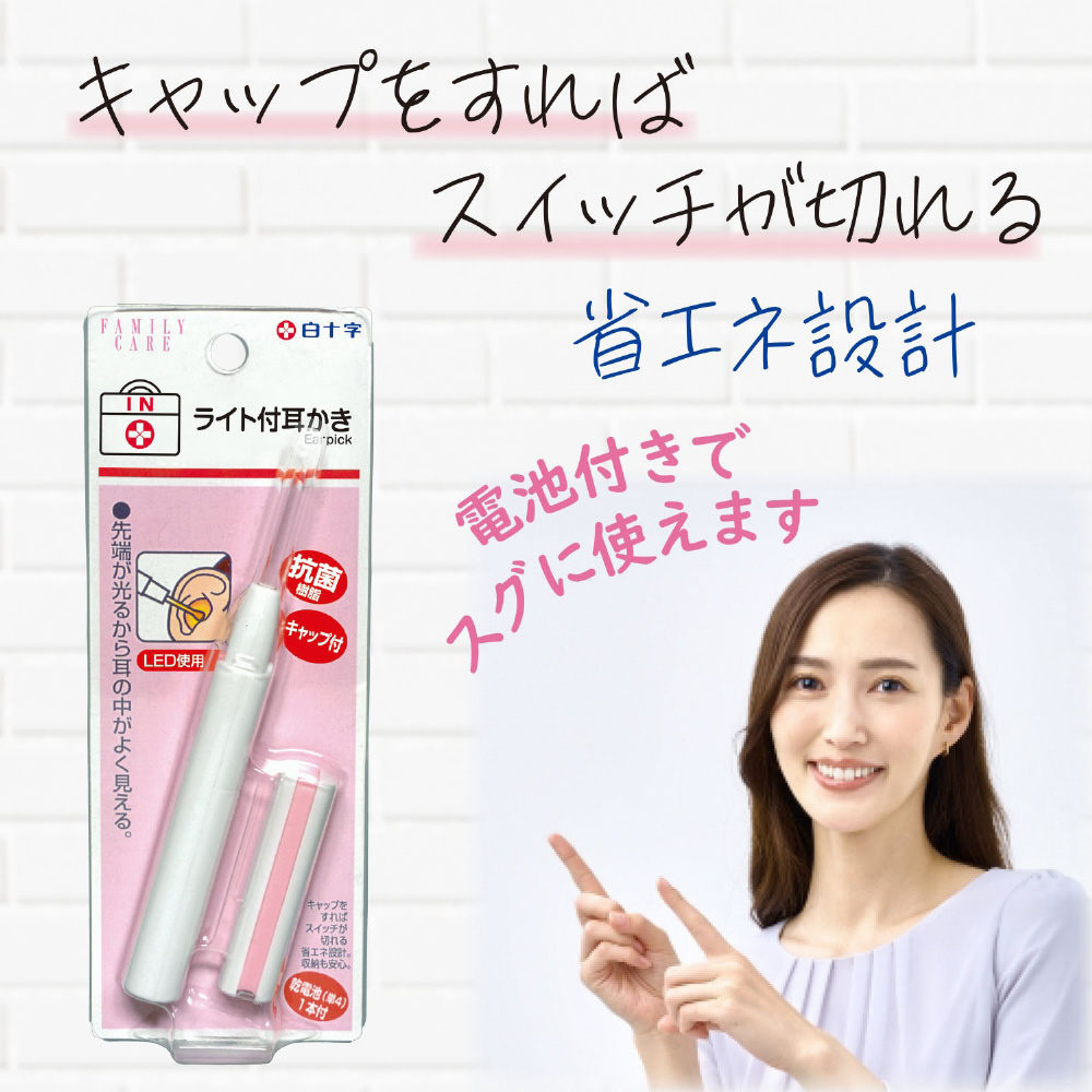 スイッチが切れる省エネ設計のキャップが付いて収納も安心。電池付きですぐに使えます。