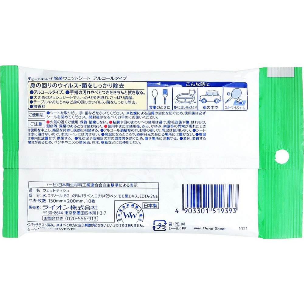 【キレイキレイ】 除菌ウェットシート アルコールタイプ 10枚〔除菌・消毒関連〕