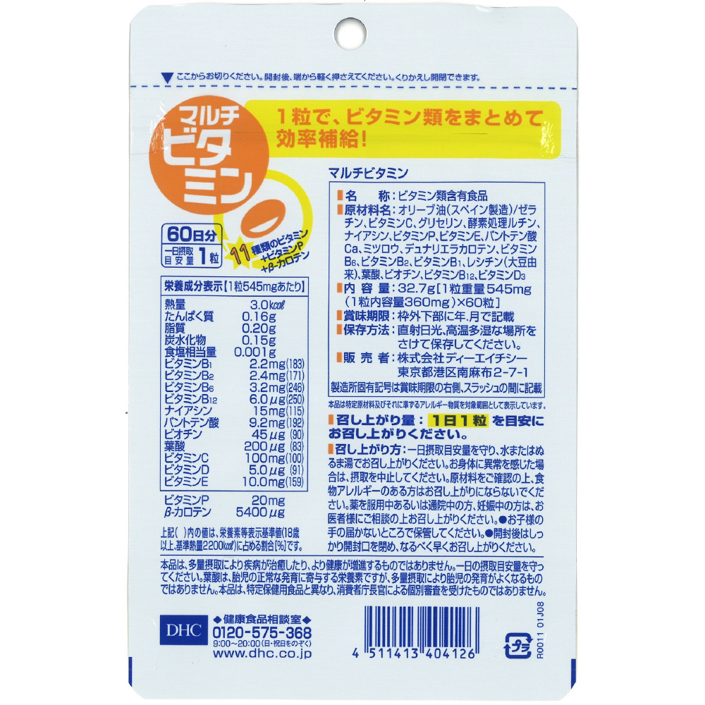 1日に必要な摂取基準量が1粒で摂れる!dhcの「マルチビタミン」は、ビタミンa、葉酸をはじめとするビタミンb群、c、e、dなど12種類のビタミンに、ビタミンcのはたらきを助けるビタミンp(ビタミン様物質)をプラス。