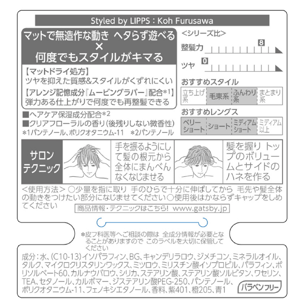 【GATSBY(ギャツビー)】ムービングラバーグランジマット(80g)〔ワックス〕