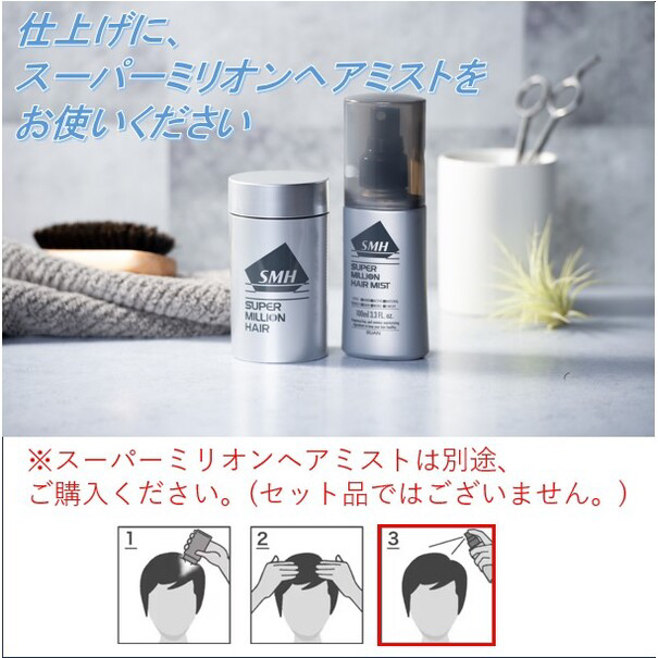 スーパーミリオンヘアーは、髪を生やすのではなく、瞬時に髪が生えたように見せる「新しいスタイルの増毛法」です。
