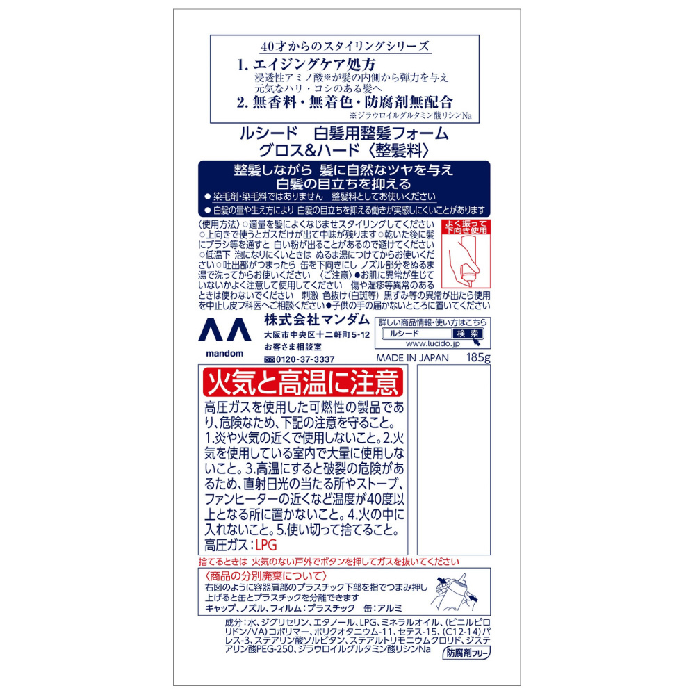 【LUCIDO(ルシード)】白髪用整髪フォームグロス&ハード(185g)〔スタイリングフォーム・ムース〕