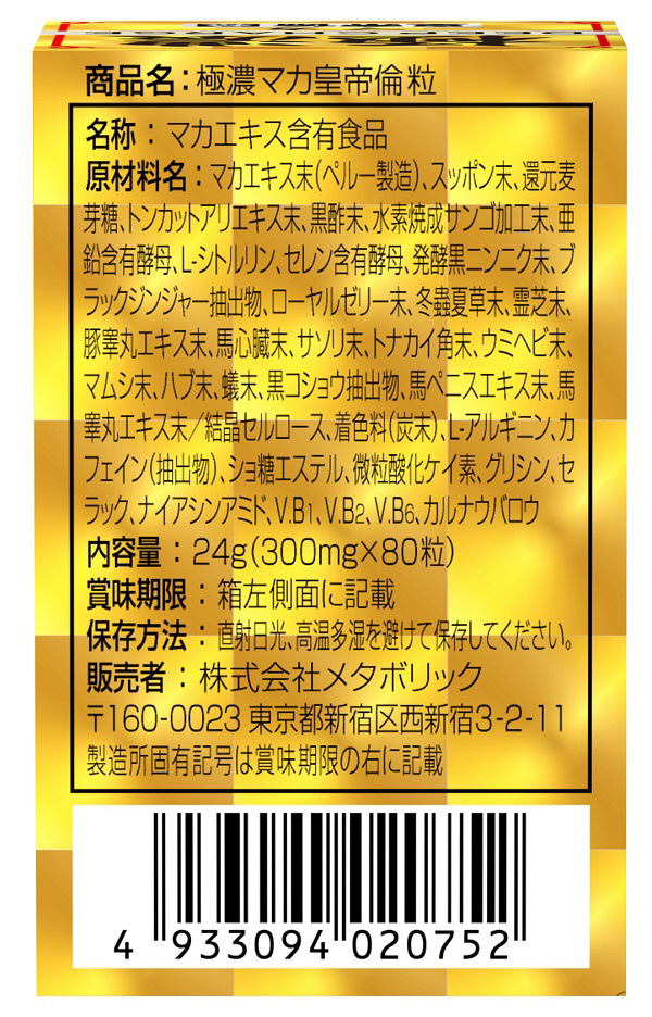 | 商品名 | 極濃マカ皇帝倫粒(80粒) |
