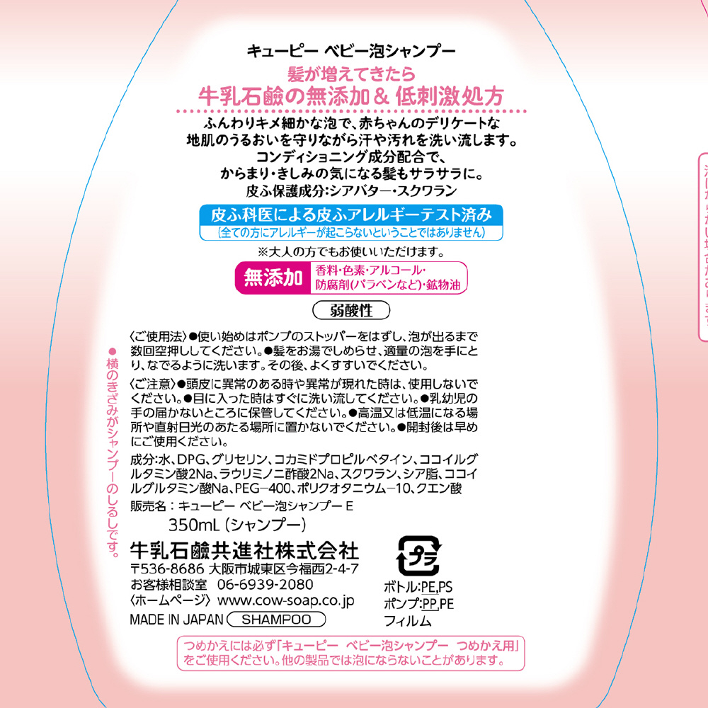 【キューピー】ベビーシャンプー 泡タイプ ポンプ (350ml)〔ベビーソープ〕