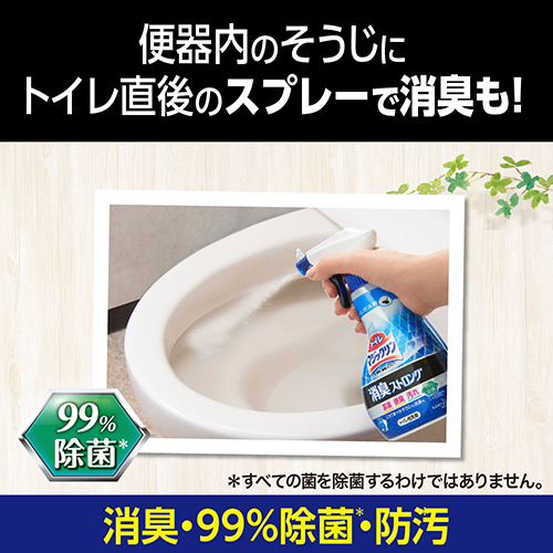 スプレーするだけで汚れはもちろん、手強い尿臭・便臭もスッキリ!ペーパーでのちょい拭きにも。
