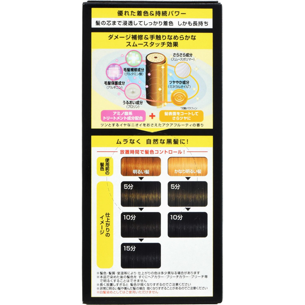 ブリーチなどで明るくなった髪をムラなく・自然な黒髪に戻し着色効果が持続する2剤式ターンカラーです。