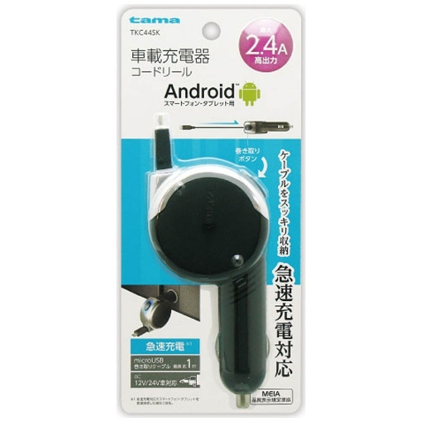 タブレット/スマートフォン対応[micro USB] DC充電器 2.4A (リール〜1m・ブラック) TKC44SK