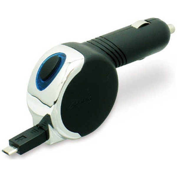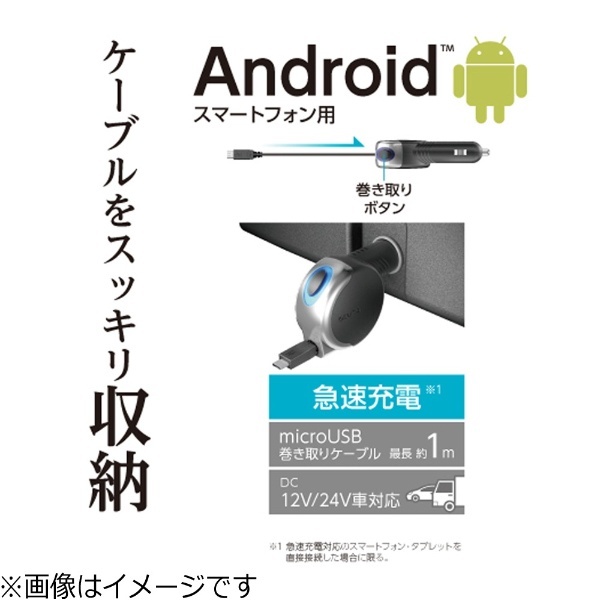 クルマで簡単にスマートフォン・タブレットを充電できるケーブル巻き取りタイプの車載充電器。[12V/24V車]「microUSB カーチャージャーコードリール 2.4A」