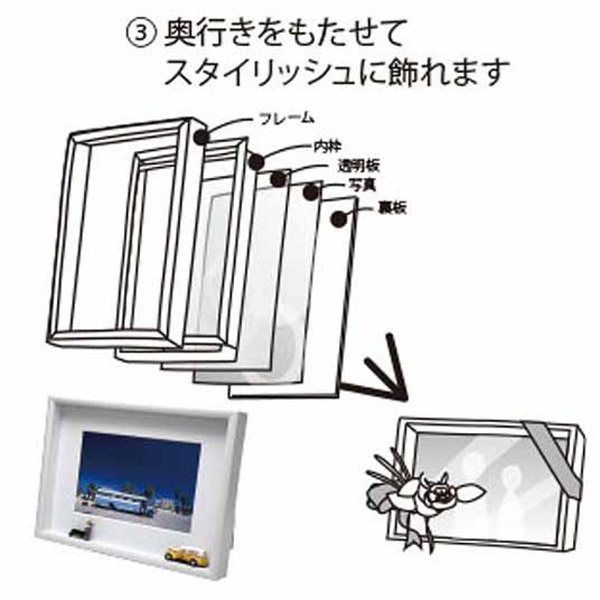 2.写真と立体物を一緒に飾れます。