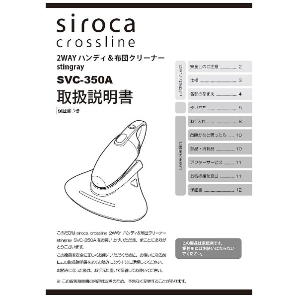 2WAYハンディ&布団クリーナーSVC-350A用取扱説明書※こちらはクリーナーではございません。クリーナーの「取扱説明書」です。