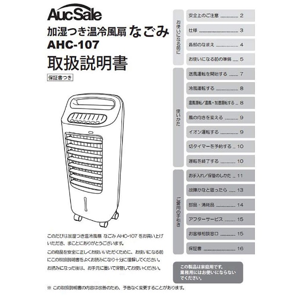 温冷風扇なごみ AHC-107 取扱説明書※こちらは温冷風扇ではございません。温冷風扇の「取扱説明書」です。
