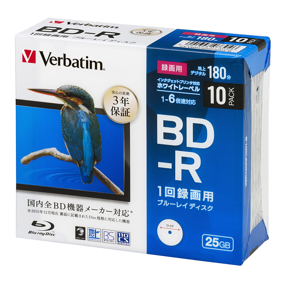 録画用 BD-R Ver.1.3 1-6倍速 25GB 10枚【インクジェットプリンタ対応】 VBR130RP10D1-B