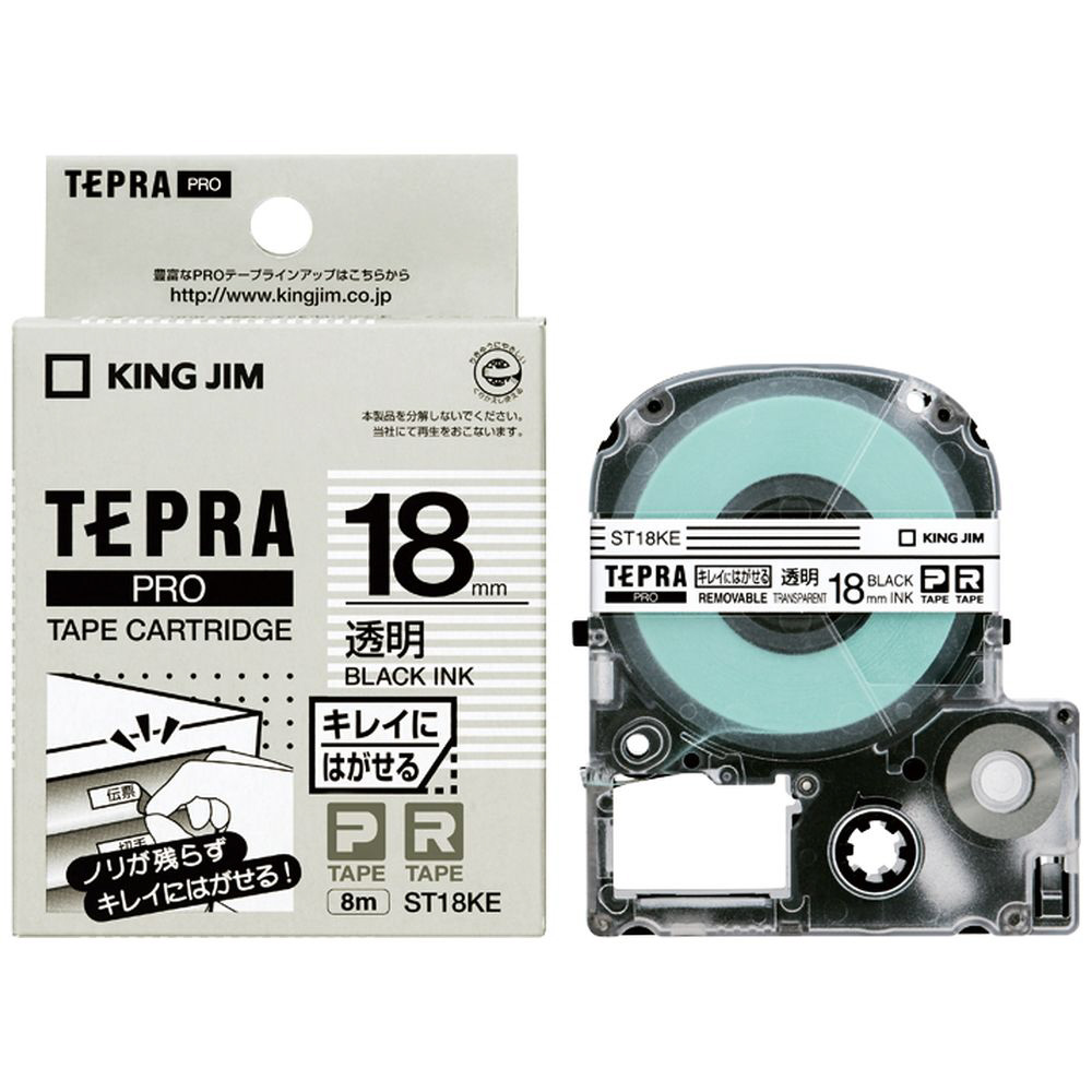 テプラ(TEPRA) キレイニハガセルテープ (透明テープ/黒文字/18mm幅) ST18KE