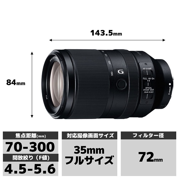 | 商品名 | カメラレンズ FE 70-300mm F4.5-5.6 G OSS ブラック SEL70300G [ソニーE /ズームレンズ] |