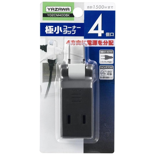 [4個口] 極小コーナータップ ブラック Y02CM400BK