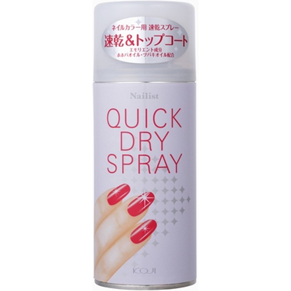 ネイルカラーの乾きを早め、色・ツヤが長持ちする速乾スプレー。乾燥中のキズやヨレを防ぎます。