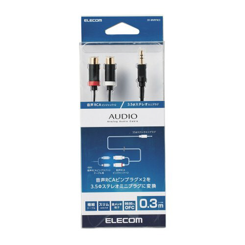 コンパクトコネクタと極細ケーブルを採用。音声RCAピンプラグを3.5φステレオミニプラグへ変換できるアナログオーディオ変換ケーブル。