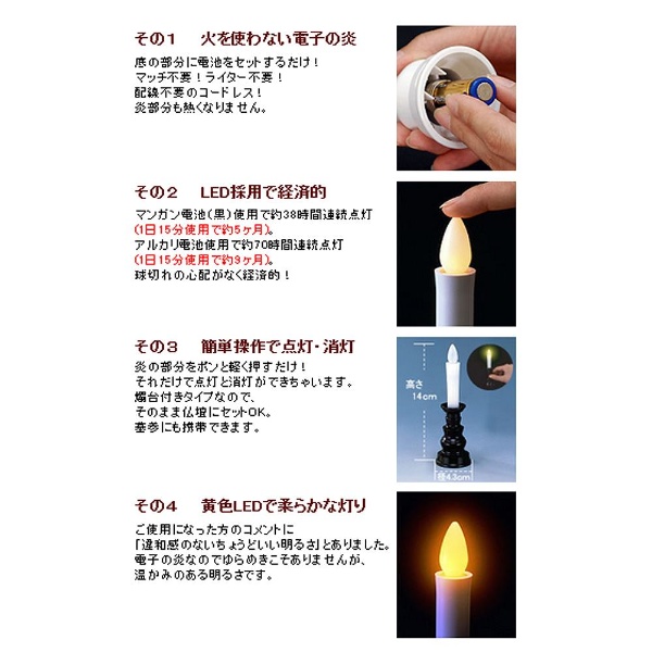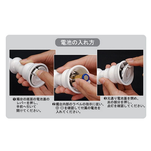■材質:ろうそく/PP樹脂、燭台・電池蓋/ABS樹脂、炎/PE樹脂